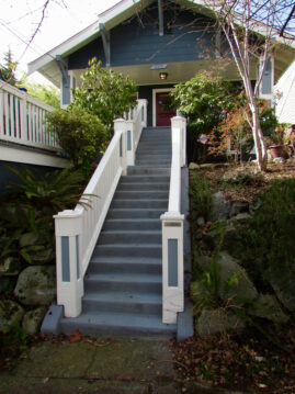 This project was for two very special and important clients, my younger sister and brother in-law. Many years ago as a ‘grand gesture’ for a wedding present, I made up a folio containing a personally designed certificate, entitling the bearers to full architectural design services for either a full house remodel, or a new custom home. My little sister and new brother in-law were both very touched, as befits the grandiosity of my present. 15 years later they finally cashed that in with me, and I kept my promise to do the job in 2023. In this case the project was a full house remodel, as they had already purchased a marvelous 1913 vintage “Craftsman” style house, located just east of the University Village shopping center. Both my sister and new brother in-law are excellent cooks, so the primary remodel focus was a custom new kitchen. The original kitchen was demolished back to the studs, and everything you see is brand spanking new. Same thing for the original main floor bathroom. It was oddly arranged for being so narrow, so that too was demolished back to the studs and a full reorganization was done. My sister and brother in-law selected all their own fixtures and finishes for the project, and I have ‘no notes’ for them. They did a marvelous job of it!